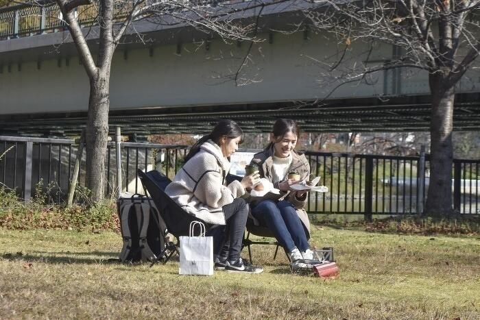 ちょっと気温は低いけど、暖かな日差しと淹れたてコーヒー、そしてコーヒーの苦みにばっちり合う揚げパンで、心はホカホカです。もちろん、女子トークが弾まないはずなし。