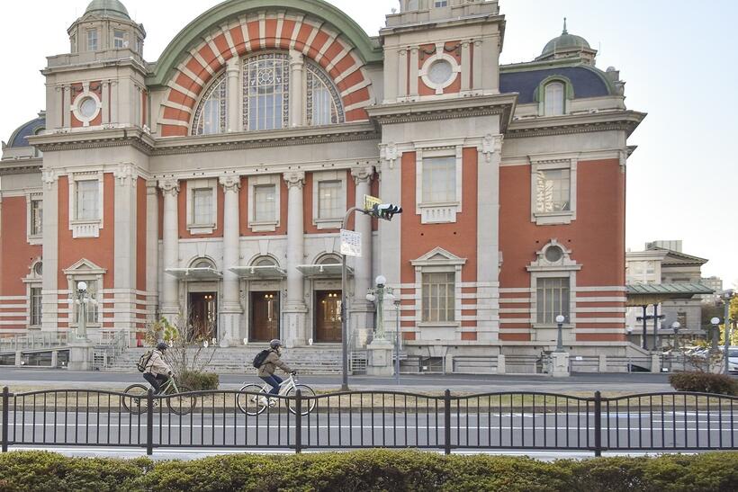 阪神高速道路が見え始めると、すぐ大江橋。 そして橋を超えると東西に大阪市役所と日本銀行大阪支店が堂々とした佇まいで待ち構えています。 そこから、みおつくしロードを曲がると紅葉がまだ少し残る並木がお出迎え。 左手には中之島図書館や重要文化財となっている大阪市中央公会堂などが立ち並び、右手には土佐堀川を眺められるというレトロで独特な雰囲気が味わえます。