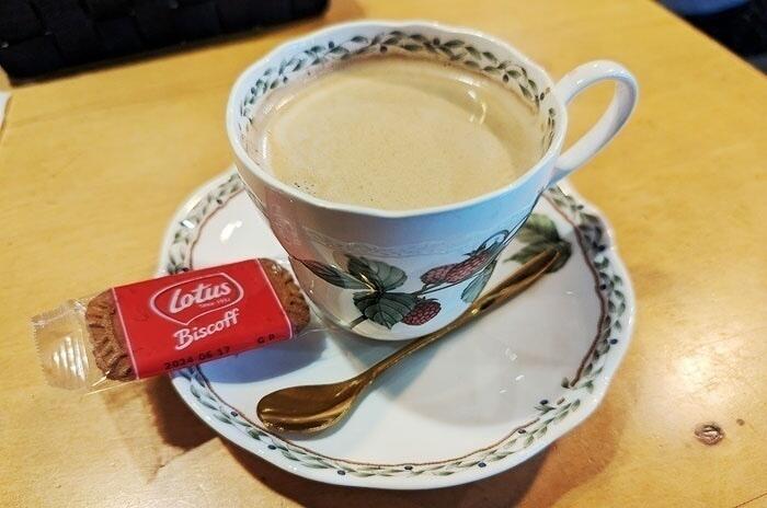 ここのコーヒーはおいしいです。ビスケットが付いてくるところが本場のイタリアンっぽいのだそう。ヨーロッパのランチタイムは長くコーヒーで何時間もおしゃべりするのだとか。