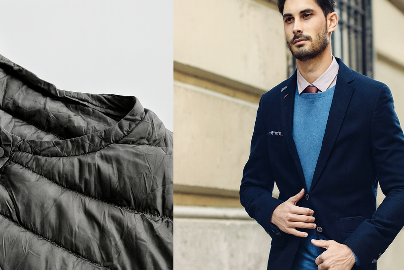 スーツ着用が必須の方は、ジャケットやスーツ用のビジネスコートはオフィスに置いておき、通勤時だけでもウィンドブレーカーやウォータープルーフのシェルジャケットなどを着るのがおすすめです。