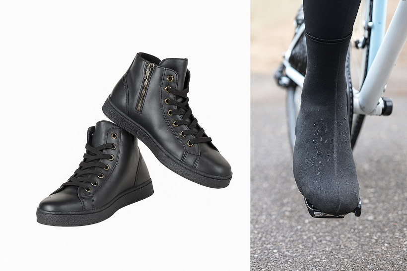またシューズカバーは、冷たい雨や冷気から足先を守ってくれます。自転車用のシューズカバーは、もともとロードバイクなどスポーツサイクルで使われるビンディングシューズ用に作られたものが多く、一般的なスニーカーには合いません。