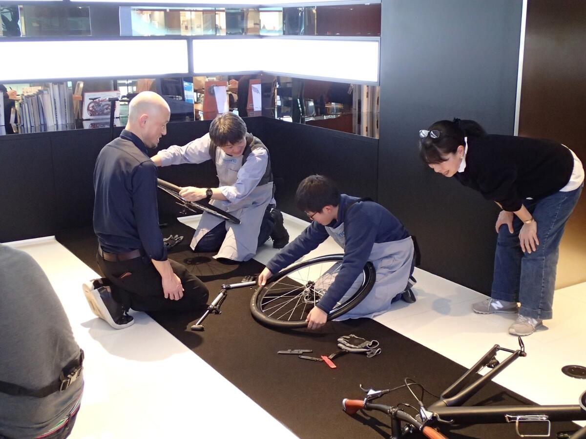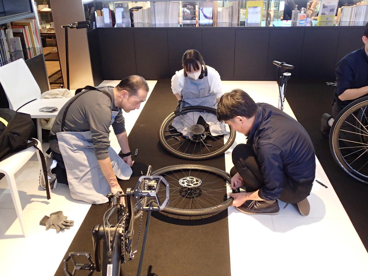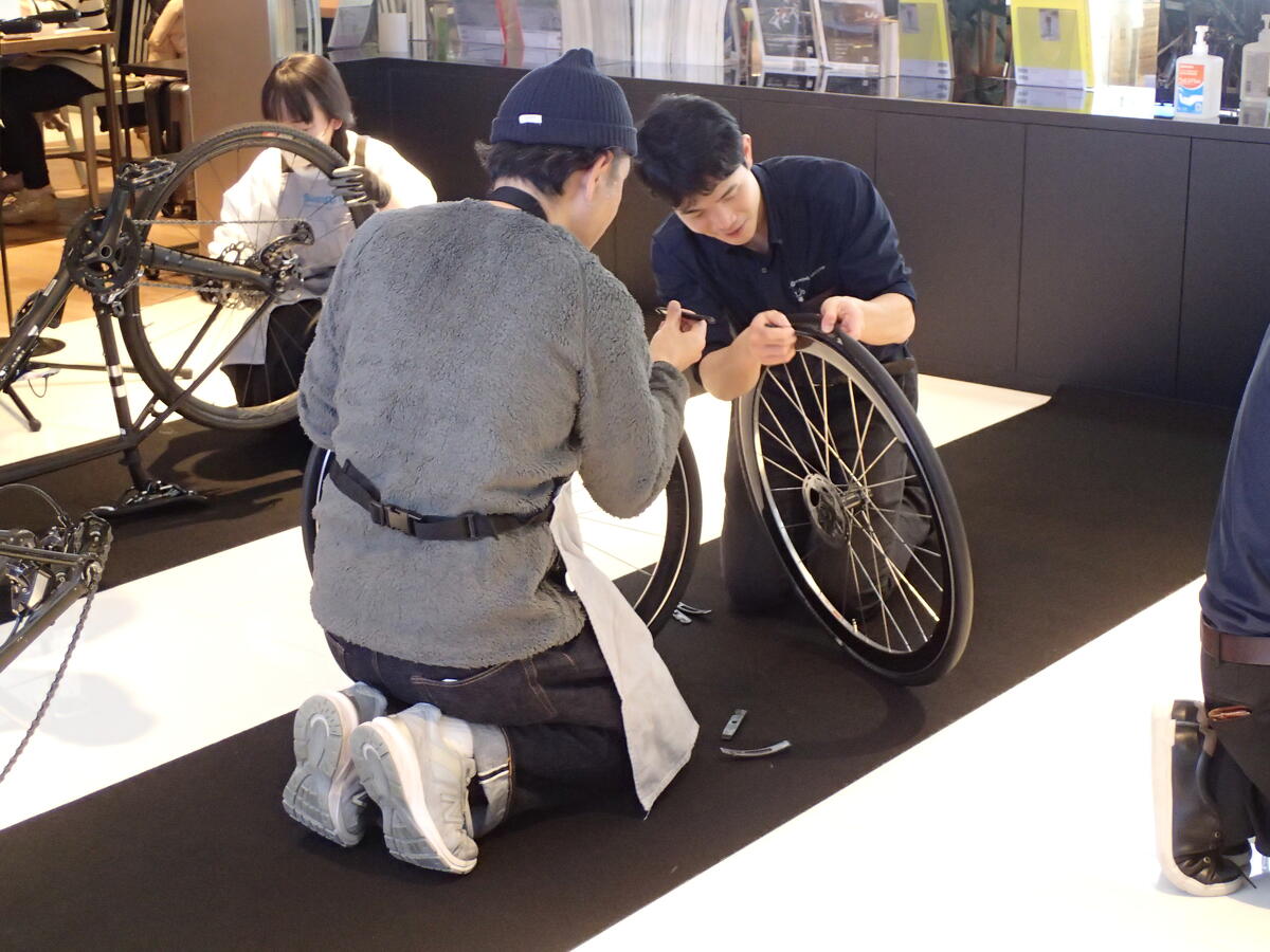 実際に手を動かしながら、パンク修理やタイヤ交換の方法を体験できます。