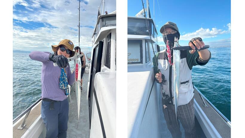 その後、お客さんのロッドにもアタリが!鋭い歯を持ちラインを嚙み切ってしまうことも多いサワラを見事に釣り上げてくれました!サワラは年中釣れる魚ではありますが、今が一番おいしい時期です。