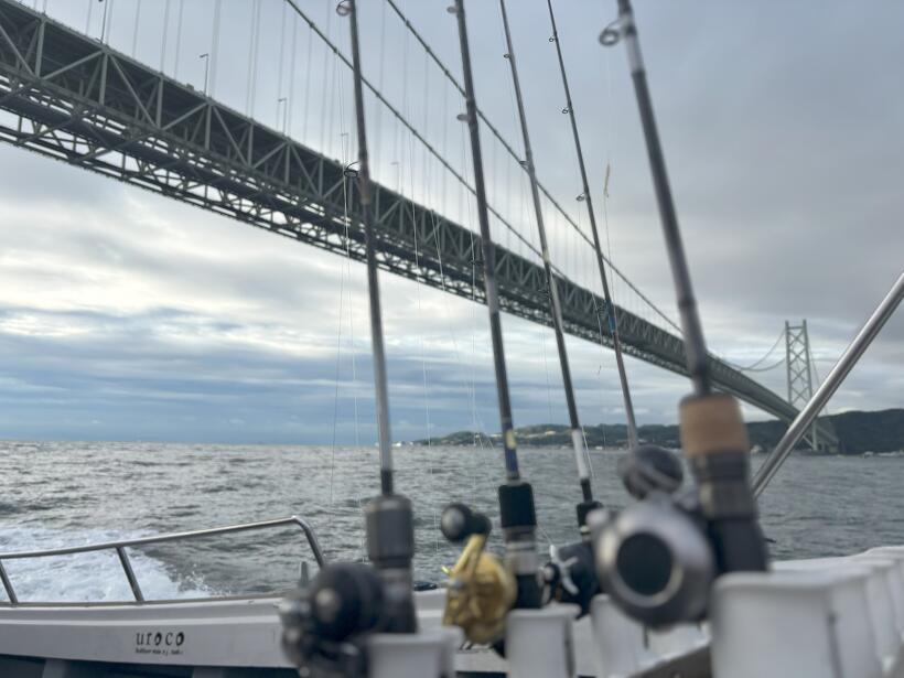 6時30分、いよいよ出船。気が付けば空は明るくなっています。大阪湾ジギングのメインポイントとなる明石海峡大橋の袂を目指す、1時間ほどの船旅です。