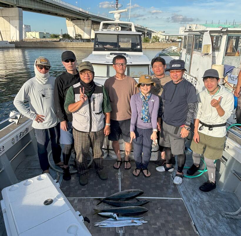 16時頃に港に戻り、釣果とともに記念撮影。今回のライトジギング体験会では、掛かった瞬間の強烈な引きや、魚とのやりとりの興奮、そして海の上での非日常的な時間を楽しんでいただけました。潮速く感度も少なめの厳しい状況でしたが、最後までシャクリ続けて頂いた皆さんナイスファイトです。