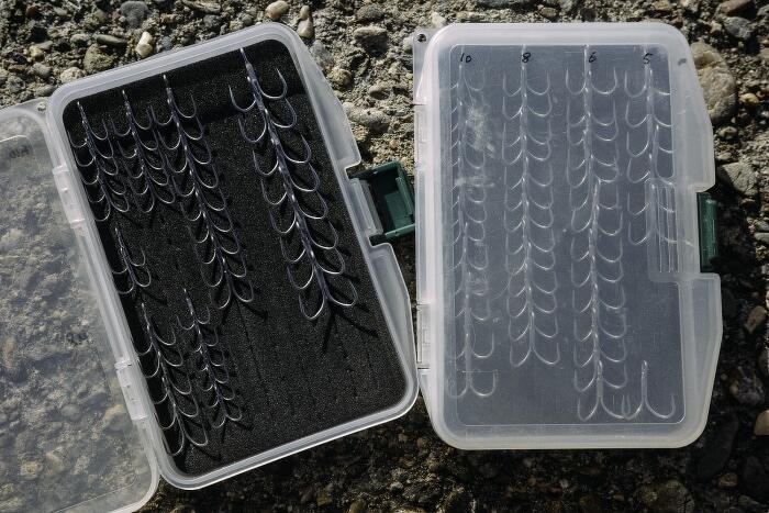 これまでも何度か釣りの名人とご一緒させてもらって、それぞれにキャラクターや釣りへの姿勢は異なりましたが、共通しているのは、とにかくタックルが整然としていて、スムーズに釣りができるよう細心の注意が払われていること。前田さんは「魚との唯一のコンタクトポイントですから」とフックにも気を遣うが、その収納の美しさにもため息が思わずこぼれます。美しい…