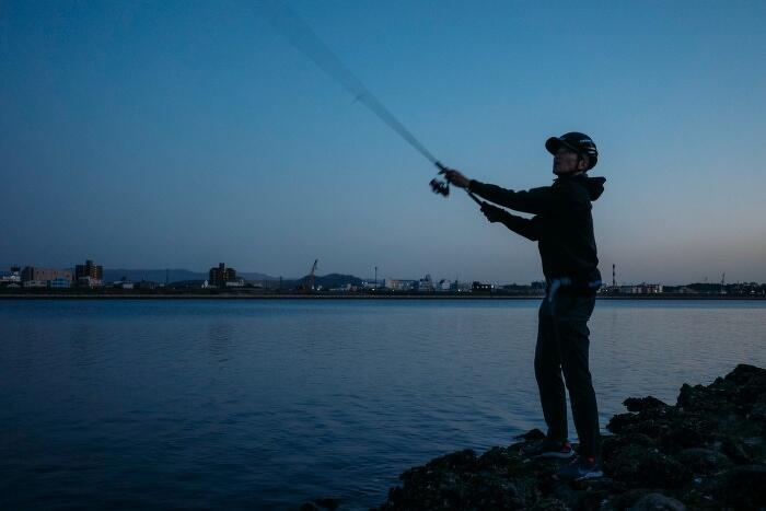 今回、指南役としてご登場いただいたのは、デザイナーにして凄腕シーバスハンターの前田大介さん。自身のブランドで釣りに関連したアイテムを手掛けるほどの、シーバスフリーク。今回の釣行前にもポイントに通ってチェックを重ねたというから心強い限りです(ありがとうございます!)。理論的なその釣りスタイルは、専門誌でも紹介されているのだとか。