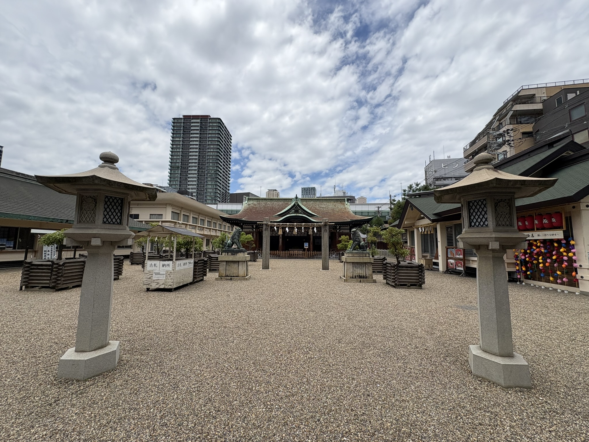 正月の十日戎では超満員となりますが、平時は風に揺れる玉縄が触れ合う音、玉砂利を踏む音が響きます。「えべっさん」探しは、恐ろしい形相で睨みを利かす狛犬と会い、凛とした空気に。商売繁盛には、真剣さが大切なのかもしれません。 -