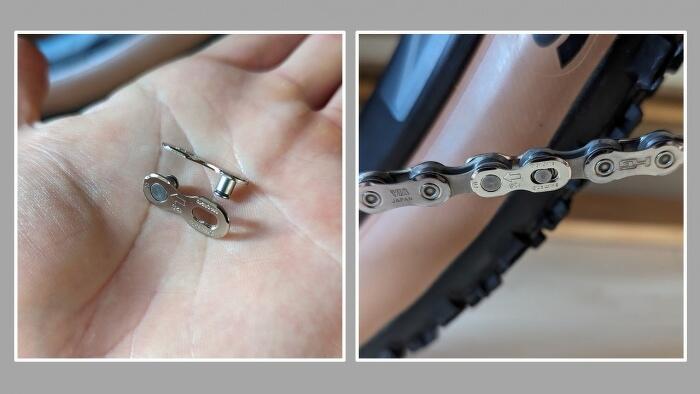 チェーンの両端の穴ににクイックリンクのピンを装着し、クイックリンク同士をはめ合います。