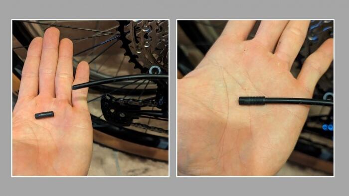 アウターケーブルをフレームに配線しケーブルの端にキャップを取り付けます。