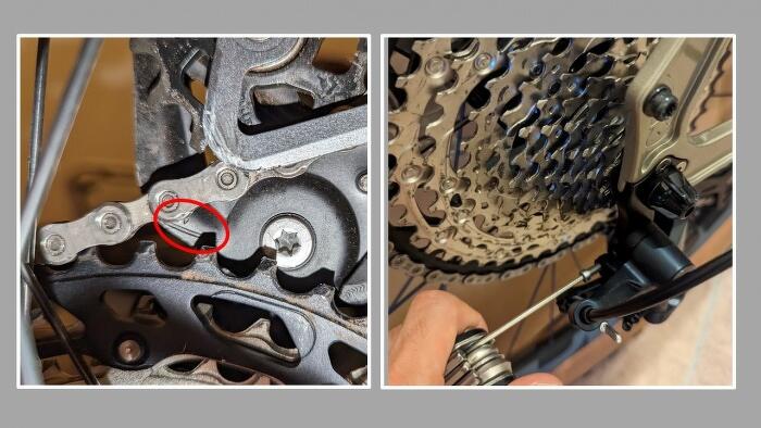チェーンの装着が完了し試しに空転させてみると、擦れるような音がしてどうもスムーズに回りません。