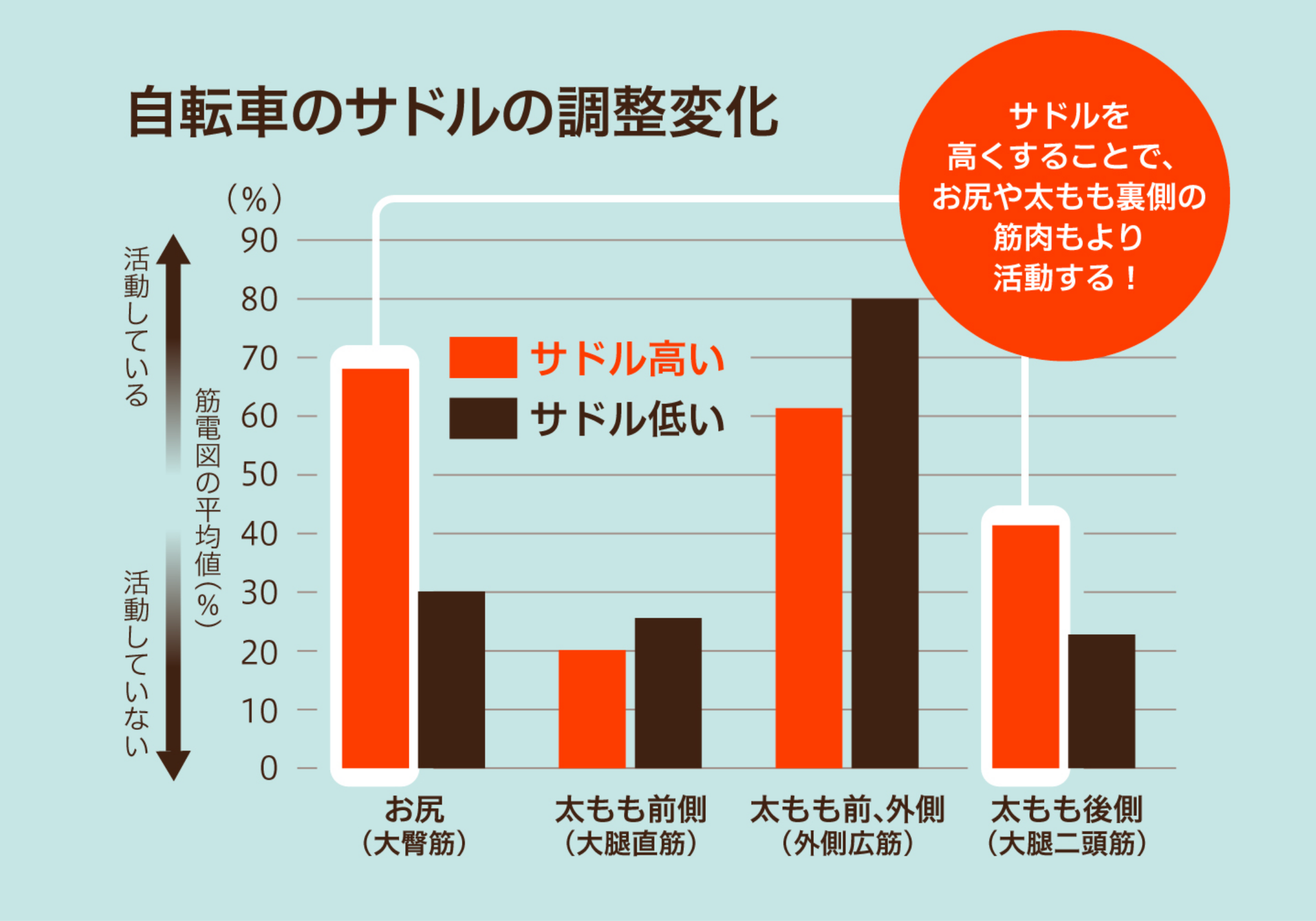 自転車を漕ぐときに使う筋肉は、太ももとお尻が中心。ラクに感じるペダリングですが、実は体感以上に筋肉を使う運動なのです。自転車に乗る習慣をつけることで、「知らず知らずのうちに筋肉がついていた」ということも期待できるかもしれません。