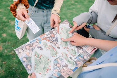 初めてこのイベントを知って参加した学生さんを含むグループは、すでに3つの島を巡ったそう。こちらのグループもカードの指示に翻弄され、道に迷いながらも思い出に残る景色に出会ったようです。