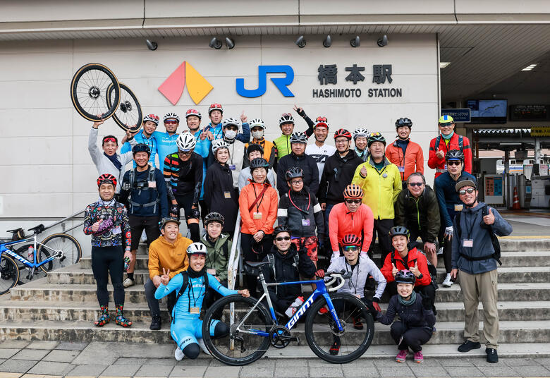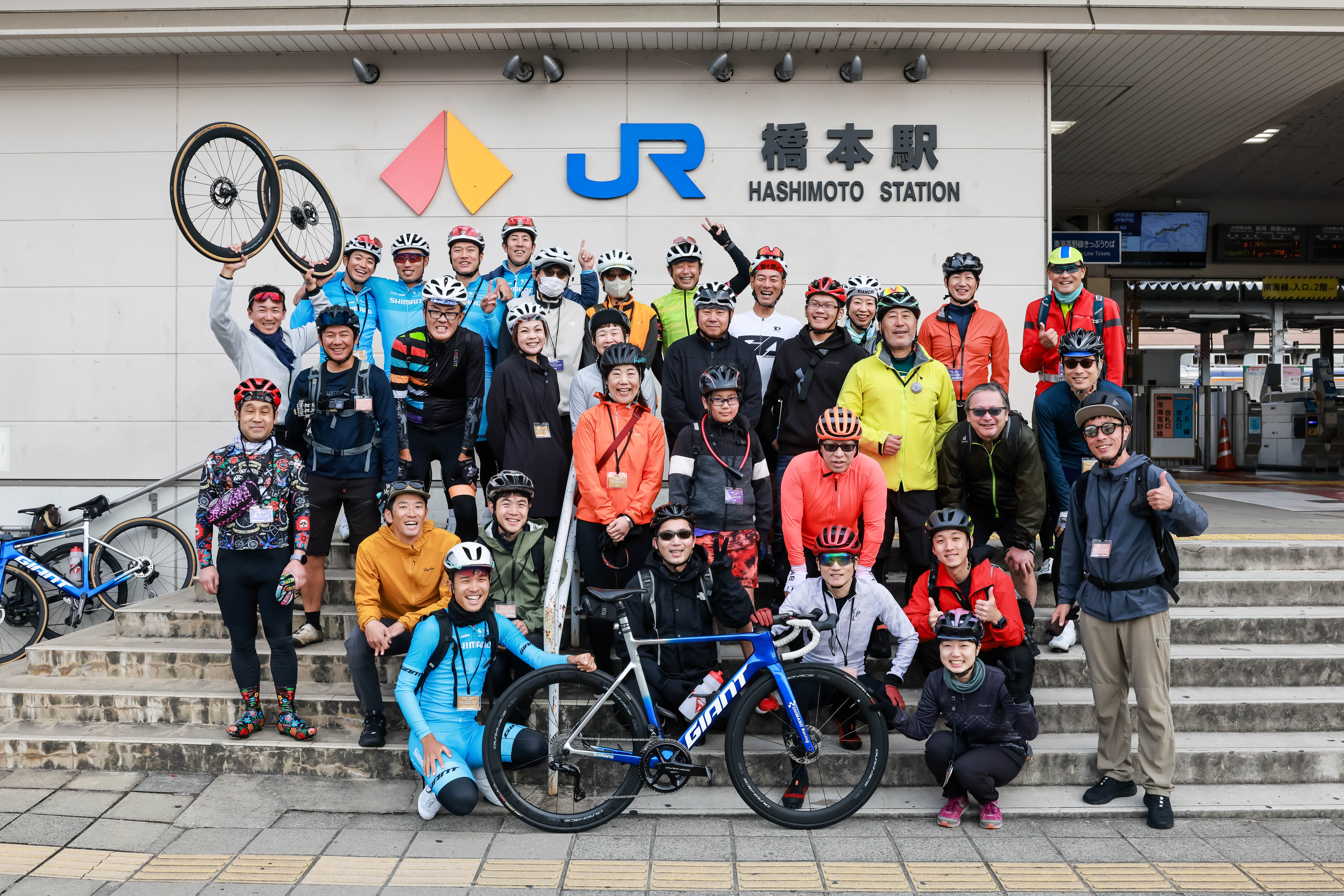 岩出駅からはJR和歌山線で橋本駅へ戻る。一両貸切のサイクルトレインで、あっという間にスタート地点の橋本駅へ。高野山ヒルクライムを終えたシマノレーシングライドグループとも合流して、一日を振り返った。