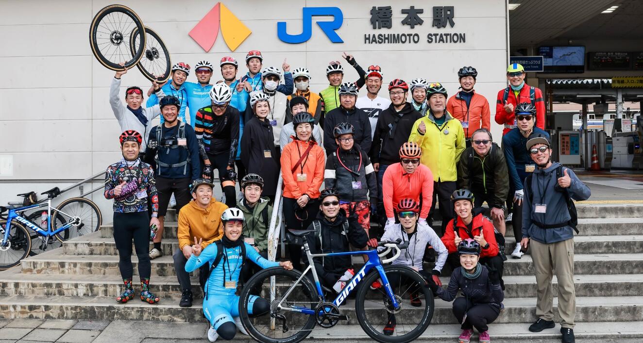 橋本駅からは「シマノレーシングと行く、高野山ヒルクライムライド」、「シマノスクエアと行く、和歌山フルーツ&スイーツライド」の二手に分かれてそれぞれライドを開始。