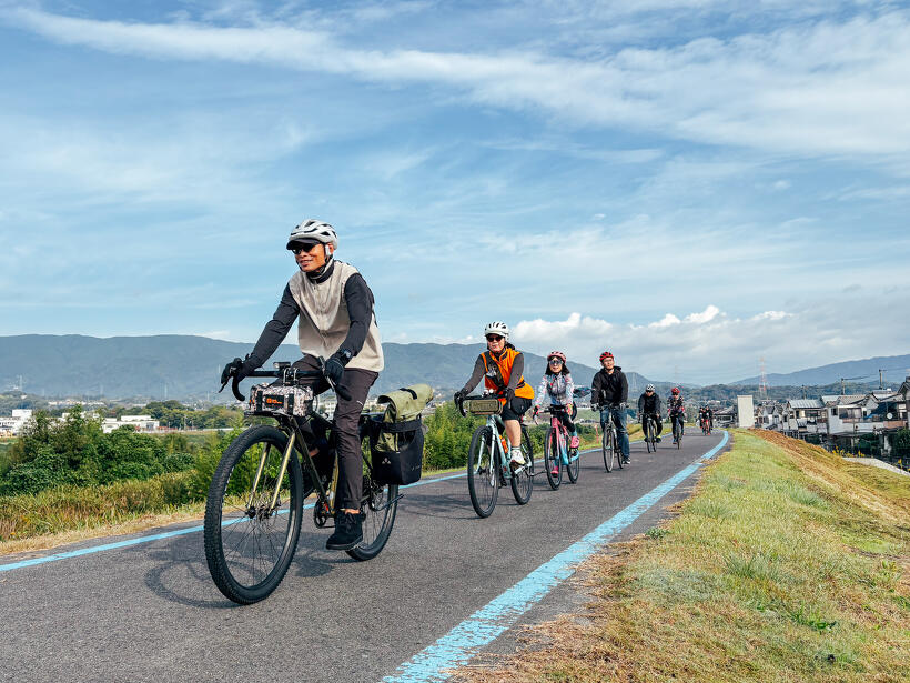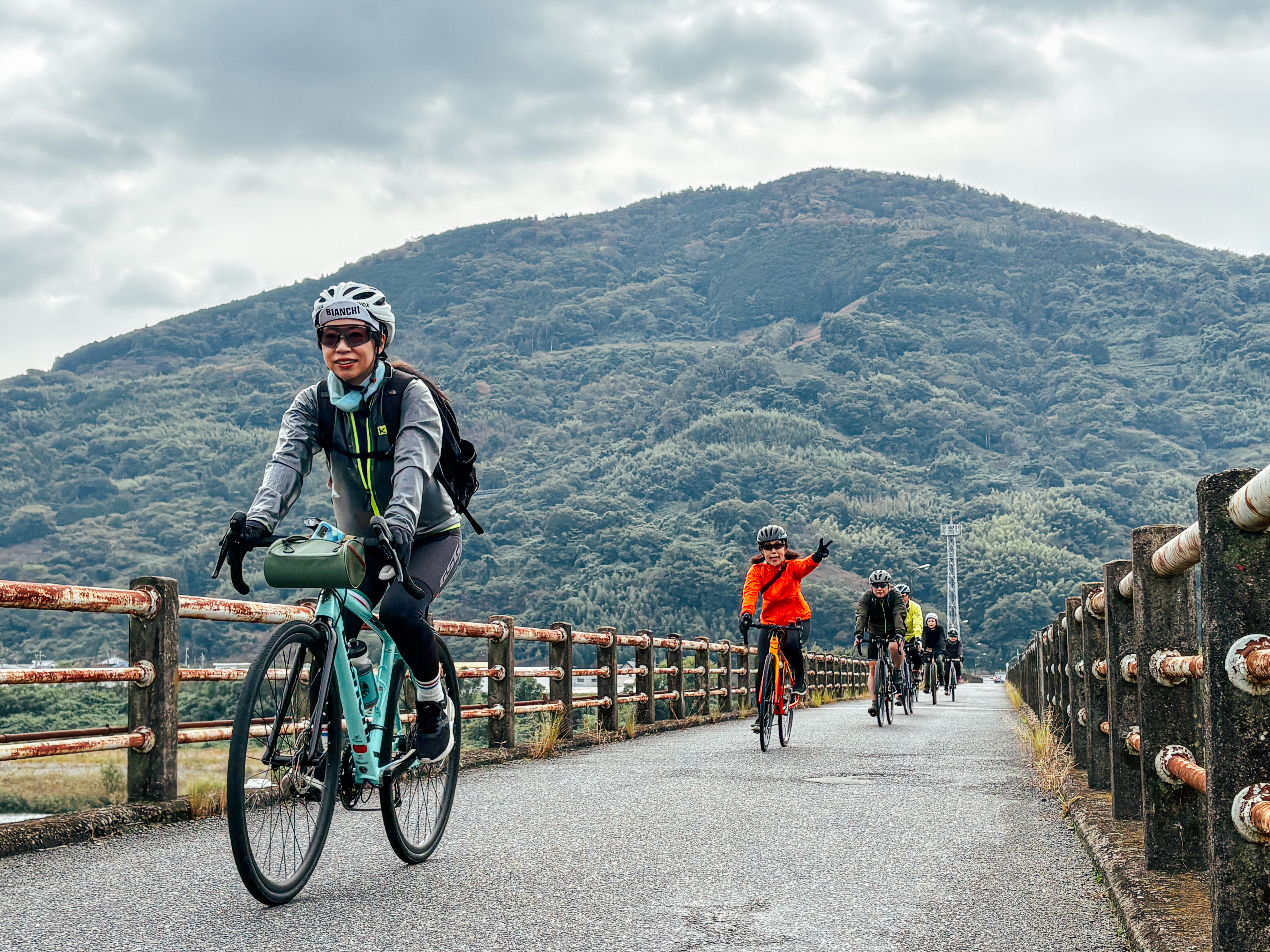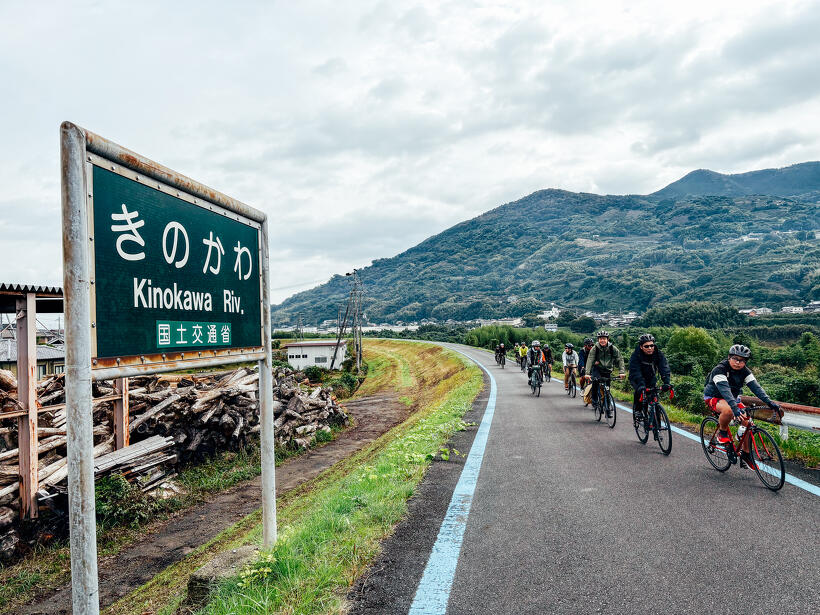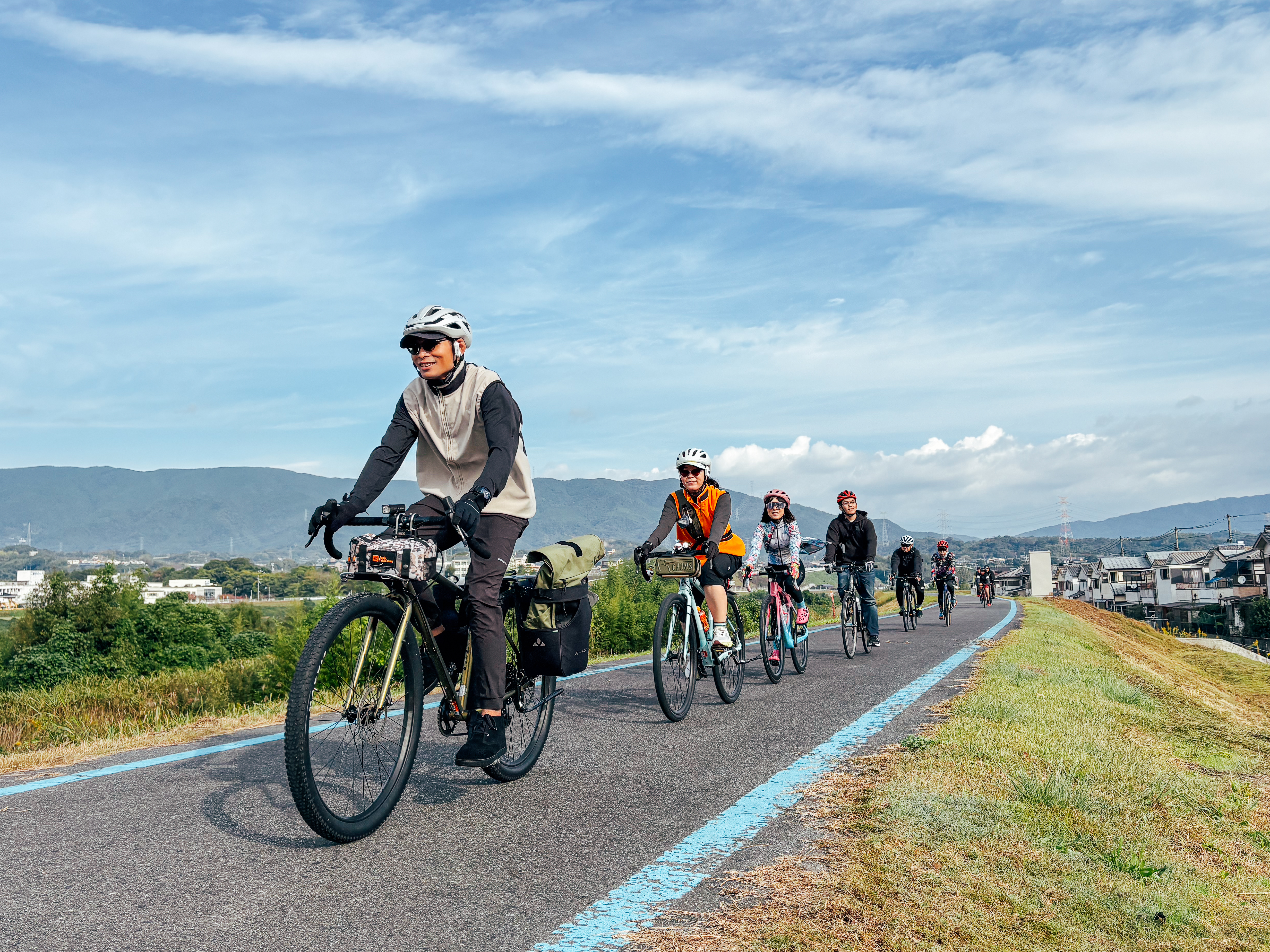 「シマノスクエアと行く、和歌山フルーツ&スイーツライド」の参加者は14名。2グループに分かれて、およそ40km先のJR岩出駅へ向かって紀の川沿いを下っていくルートが設定された。