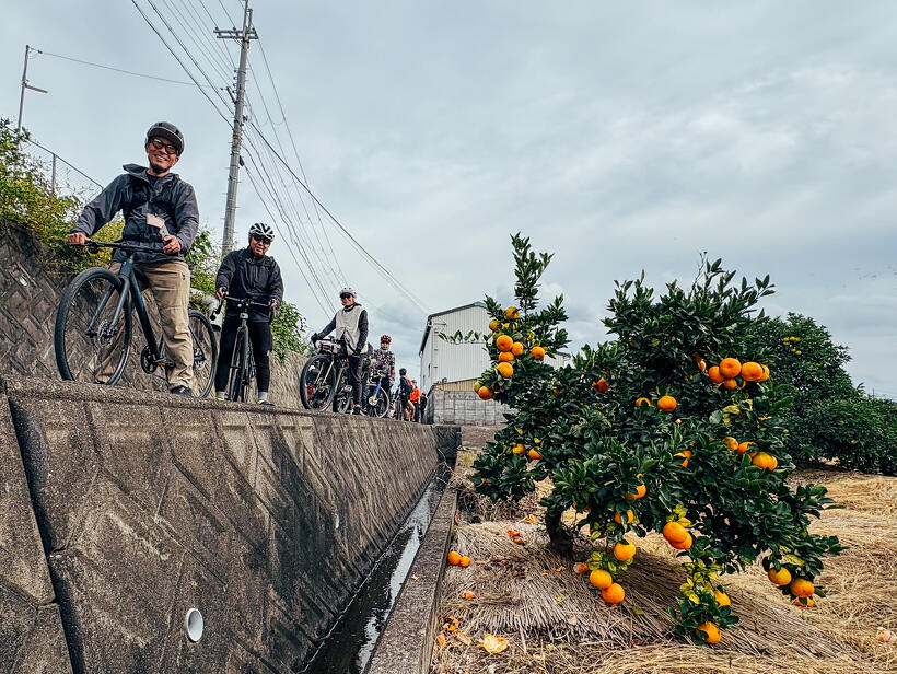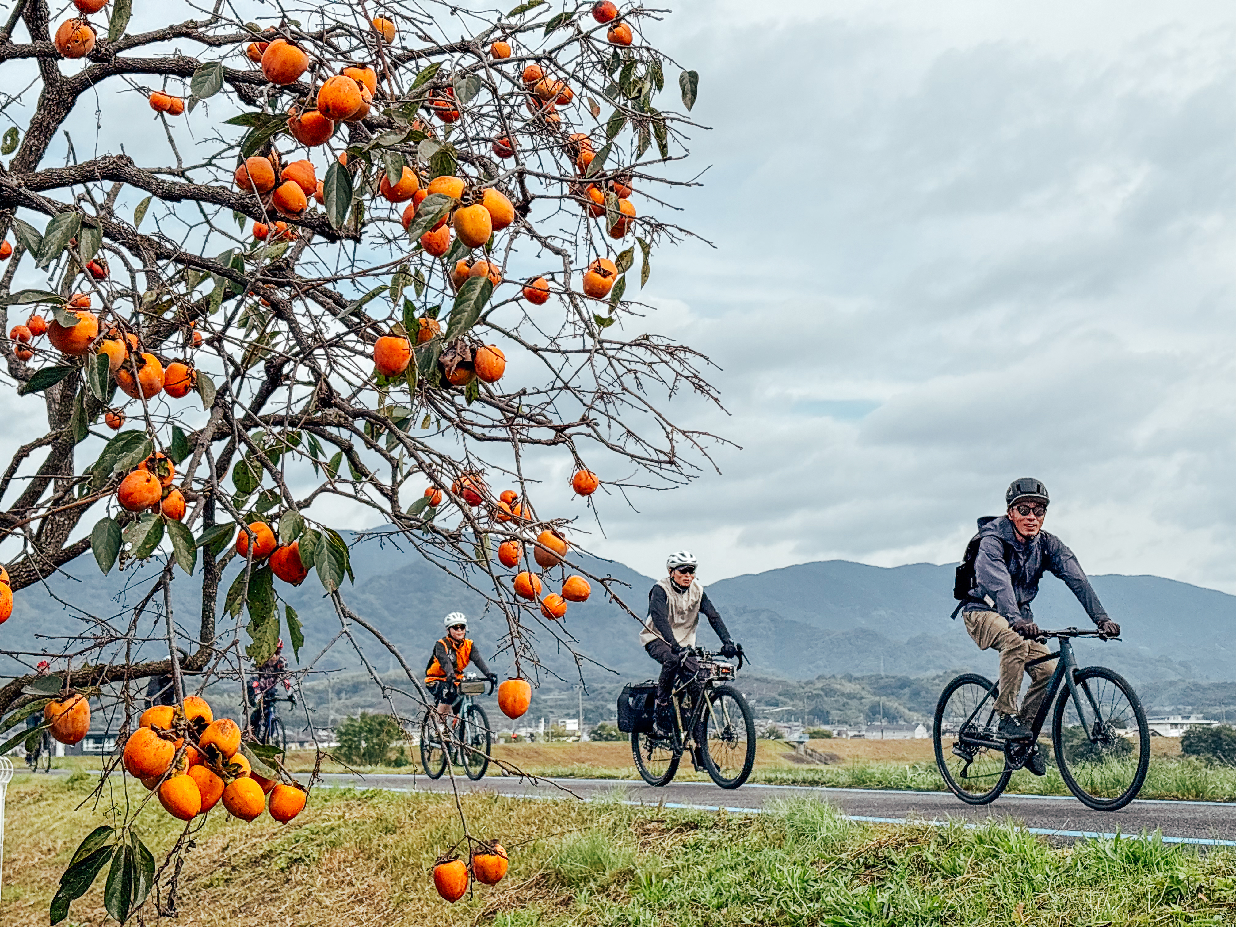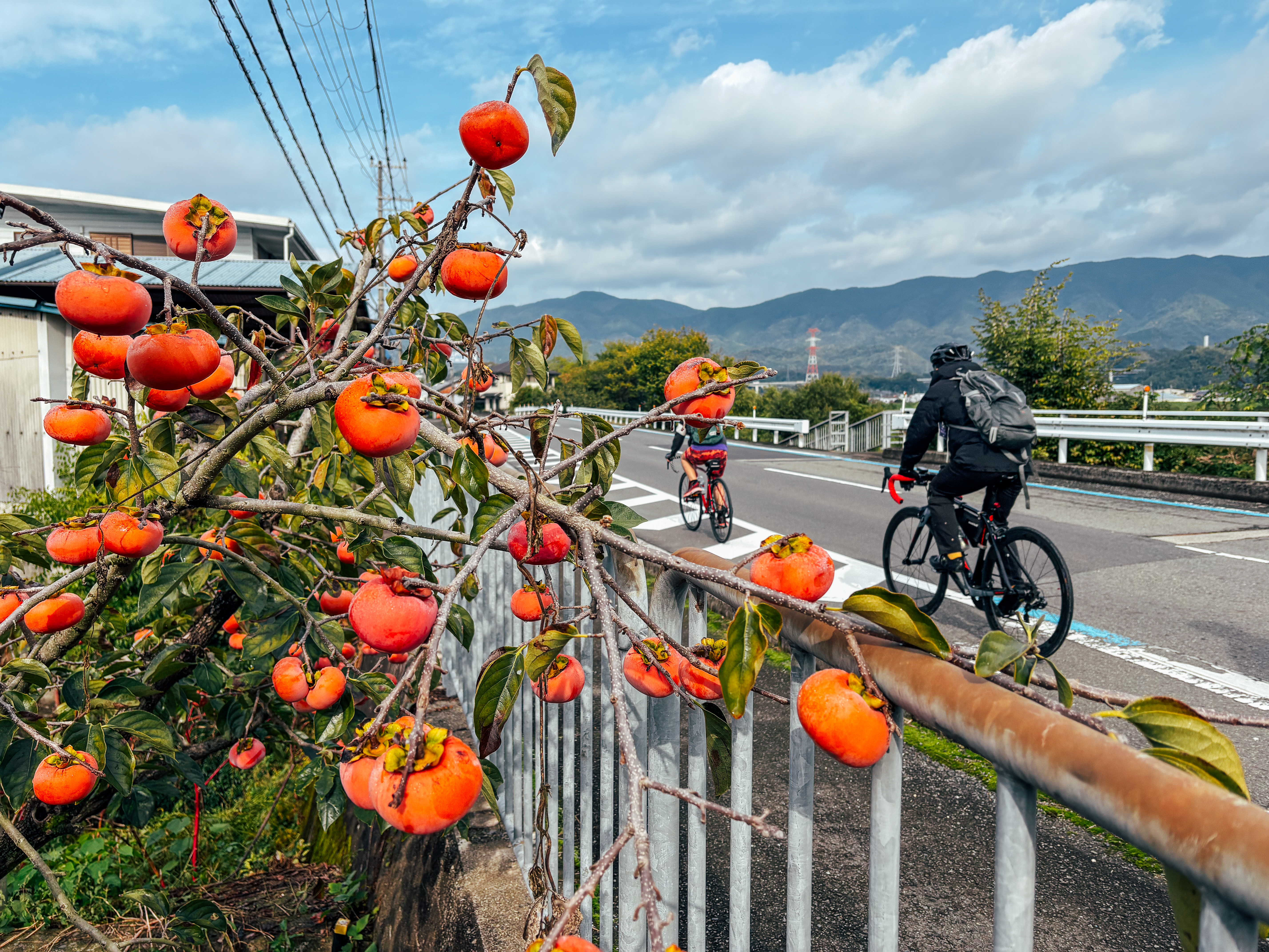 和歌山のこの一帯は、果物栽培が盛んな地域。今回のコースは、スタートしてから柿、柑橘類、桃と走りながらグラデーションのように果実の畑が変わっていくのが印象的で、秋の実りを目でも楽しむことができた。