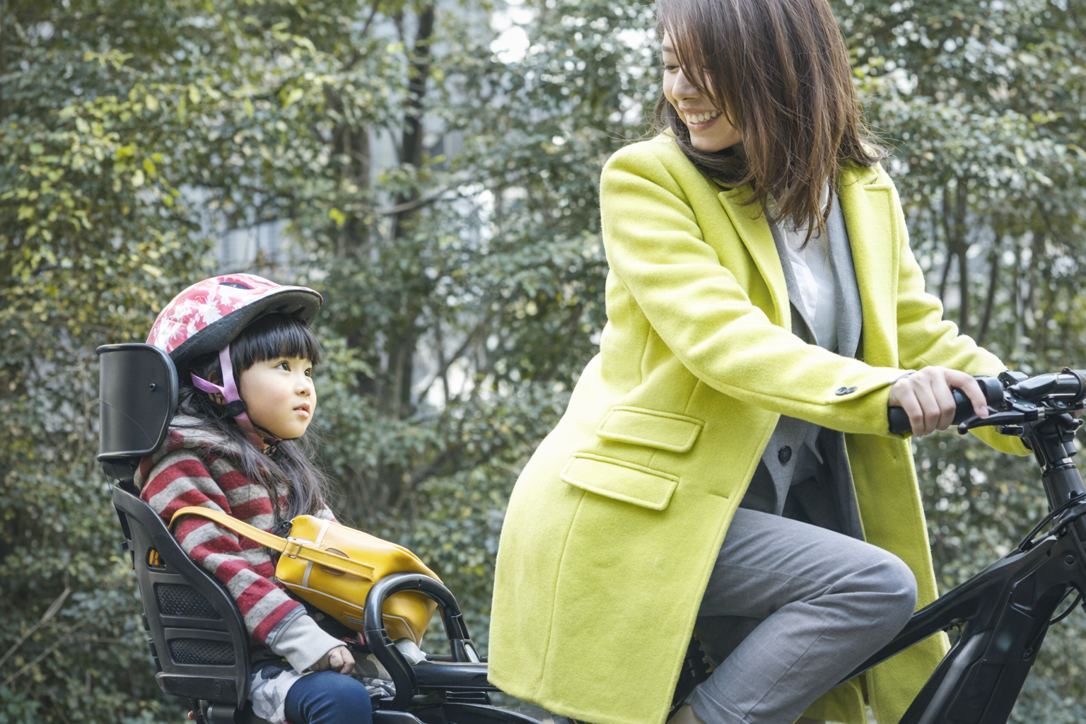 子ども乗せ電動アシスト自転車で、送迎からそのまま通勤サイクリング!