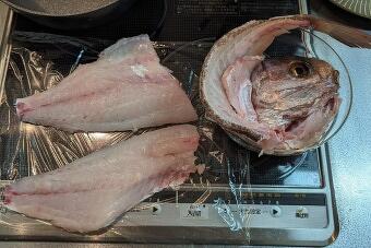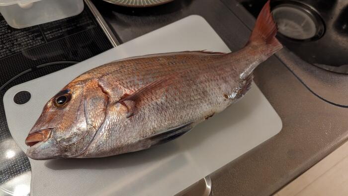 一匹も釣れなかったはずの私の家の台所に鯛が。船長さんが、釣った一匹を「お土産に」と戴きました。