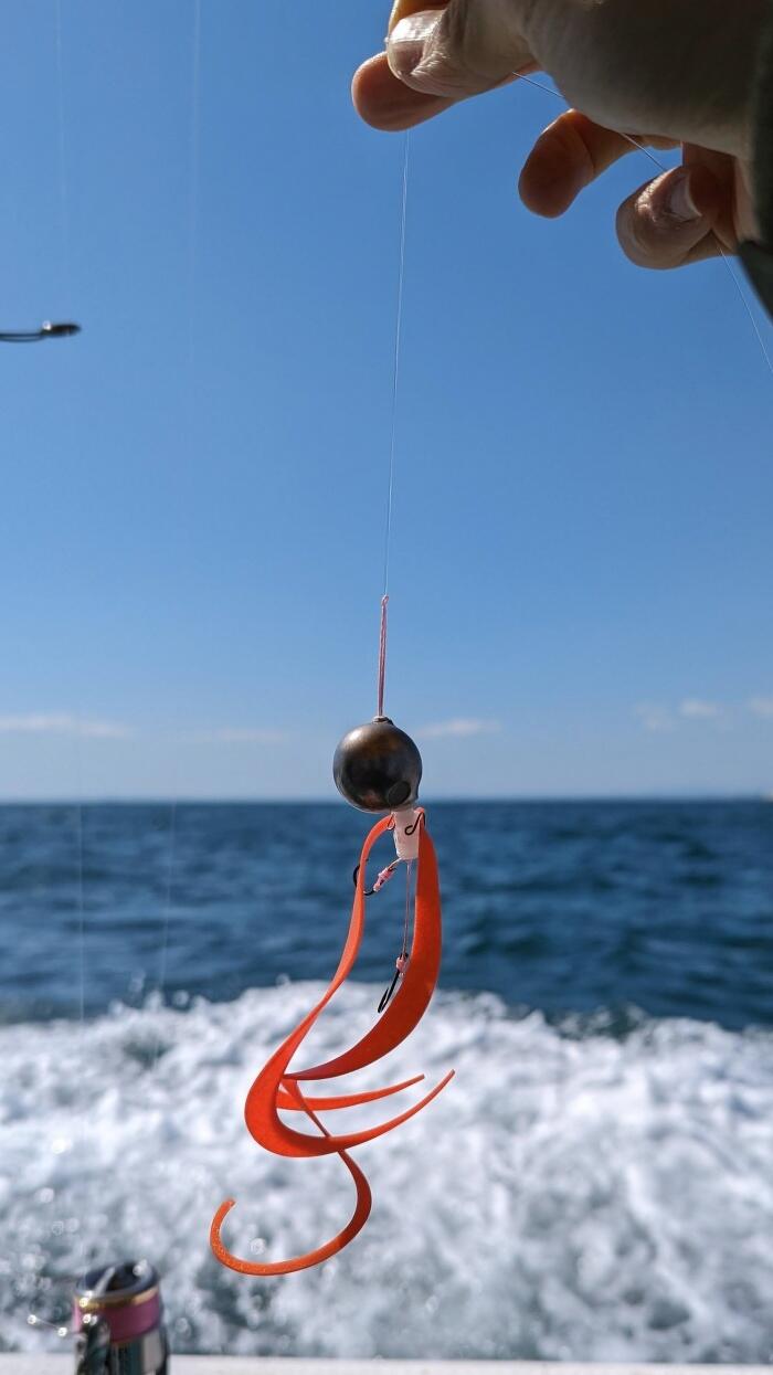 また、もっと積極的に仕掛けを変えてみるべきでした。色々試してアタリを出すことこそ鯛ラバの醍醐味とのことで、周りに釣れている人がいれば、おもりの重さ、ネクタイの形状やカラー、そして巻き上げスピードを合わせます。