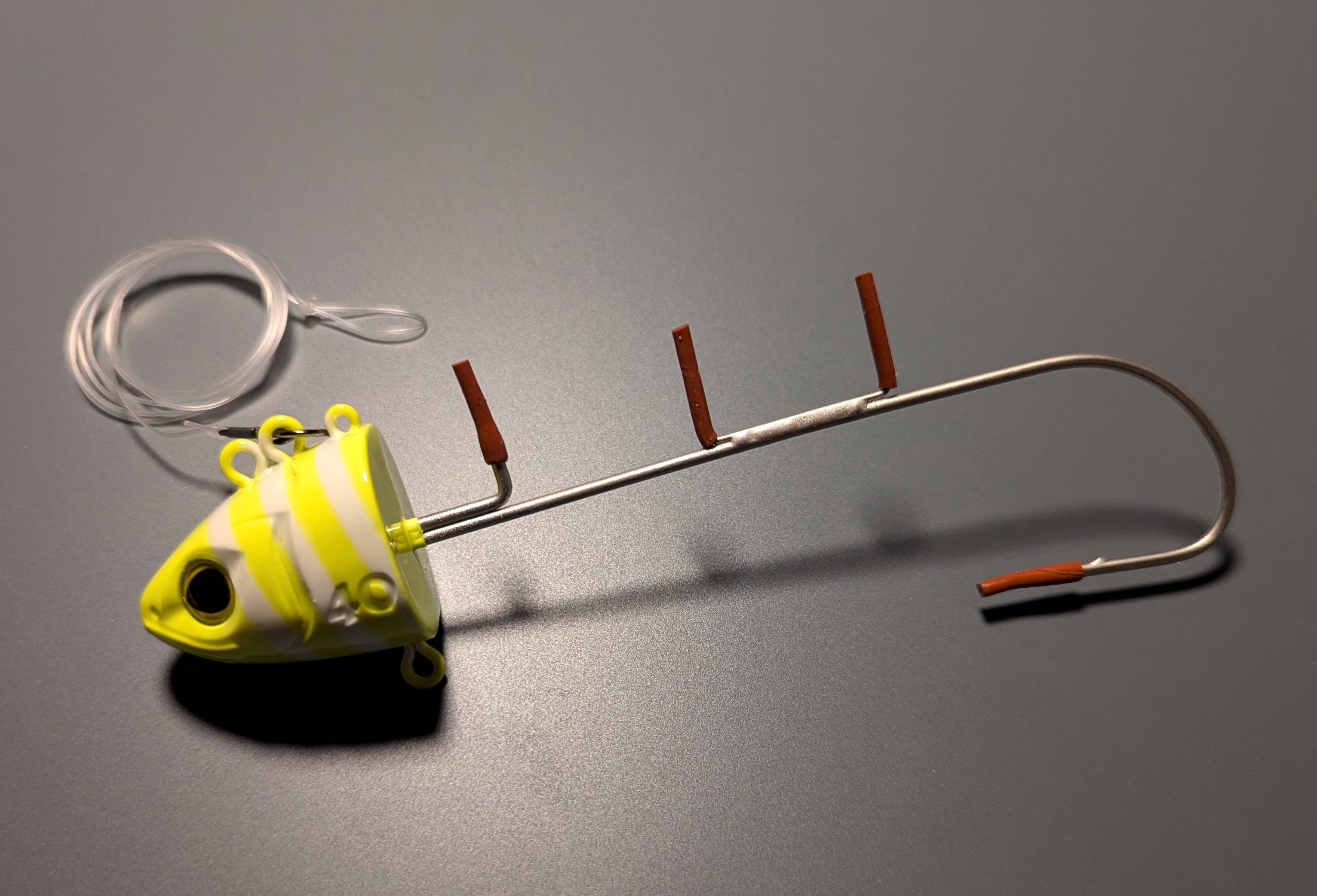 鉛のオモリとフックが一体化したもので、今回は船長の指示に従い40号を使用しました。大阪湾では最も一般的なサイズで、水深や潮の速さに対してバランスが取りやすい号数です。