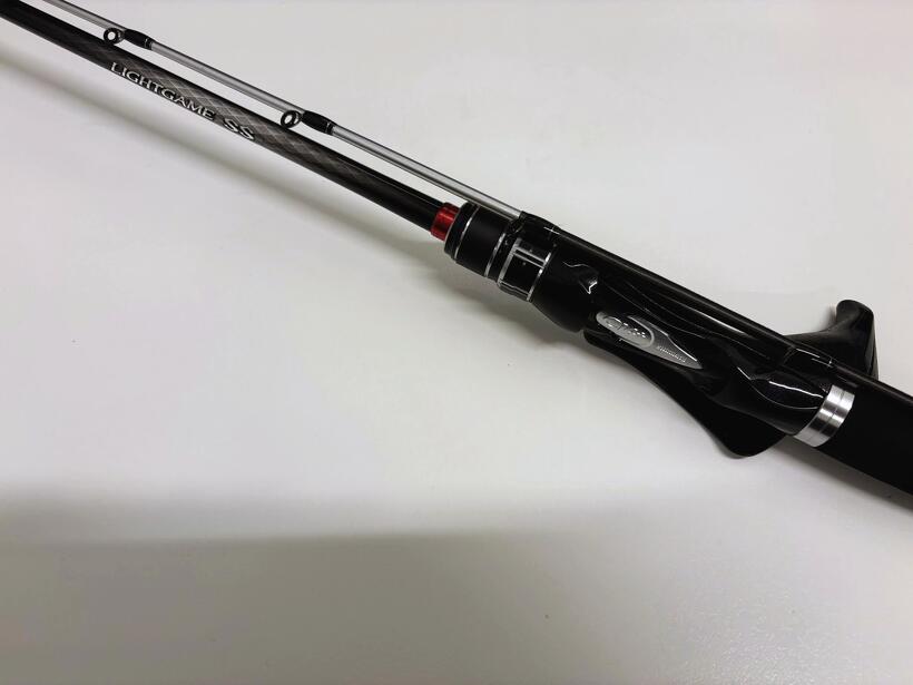 まず用意したのは、船用の釣竿「ライトゲーム 82H190」。タチウオテンヤに適した設計で、しっかりとしたバット(胴)と繊細な穂先を兼ね備えています。