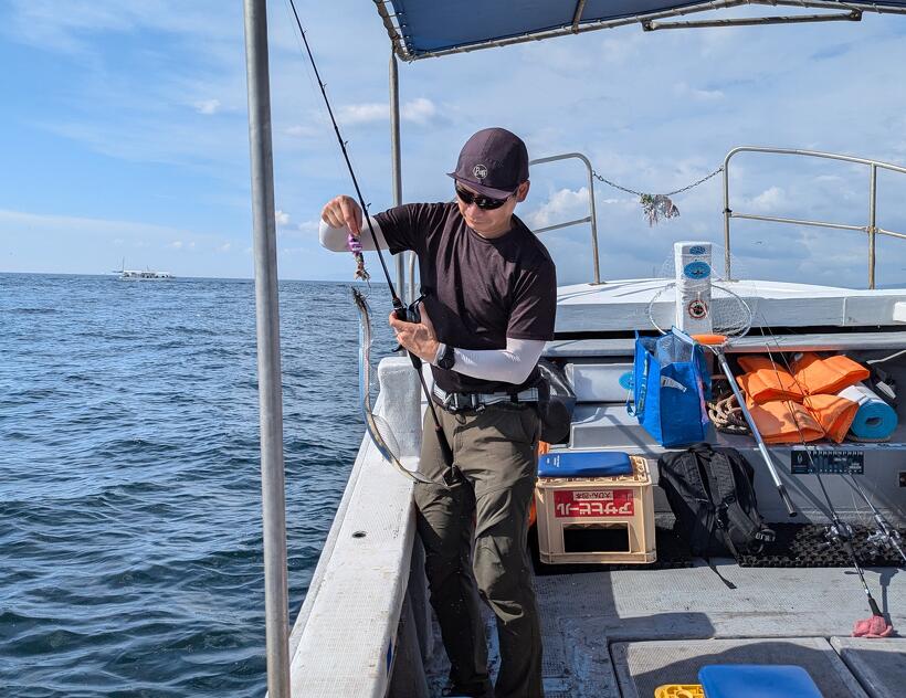 最初は「波の揺れ」と「魚のアタリ」の区別がつかず、何度も空振り。でも、何度か繰り返すうちに気づき始めました。波の動きは一定で、竿先がフワリと戻る感じ。対して、タチウオのアタリは「コンッ」と鋭く、どこか意思を持ったような反応。 少しずつ判断がつくようになり、アワセのタイミングも早すぎず、遅すぎず。うまくフッキングできたときに竿がしなると、「やった!」と気分が高揚します。