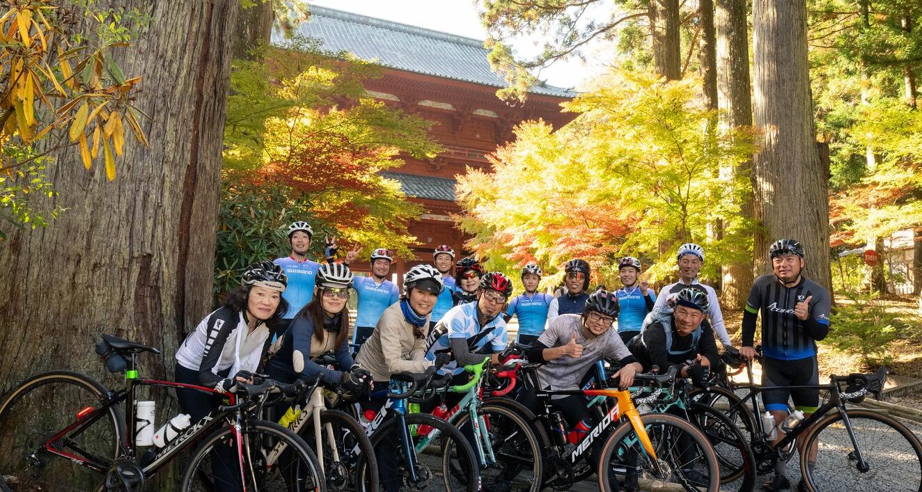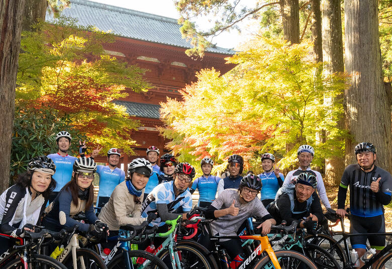 今回はシマノレーシングの選手もサイクリングガイドとして参加。秋の高野山を参加者の皆さんと一緒に楽しくヒルクライムします。