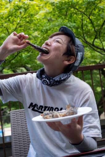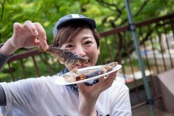 ここで釣った数のニジマスを唐揚げにしてもらい、揚げたてをいただきます。これがもう、めちゃくちゃ美味しい!「外はカリっと、中はふわっとしていて最高!ASAKENさん、ビールが欲しくなりますね」とYUKIさんが言うのもわかります。こんなに美味しいならもっと釣りたくなるなあ。ちなみに1匹280円(調理代込み)で引き続き釣りを楽しむことができます。