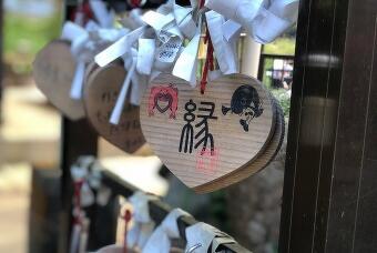 唐揚げを味わった後は、縁結びの神さまが祀られている園内の「鱒ます恋こい神社」に立ち寄ってみることに。この神社名、国内で元気に泳いでいる鱒(マス)と鯉(コイ)に重ねて名付けたらしく、その関西的センスに脱帽です。有馬温泉にある湯泉神社の祭神を分霊いただいた由緒ある神社で、縁結びを願うたくさんの絵馬も。私たちも一応(?)神さまに良縁をお願いしてきました。