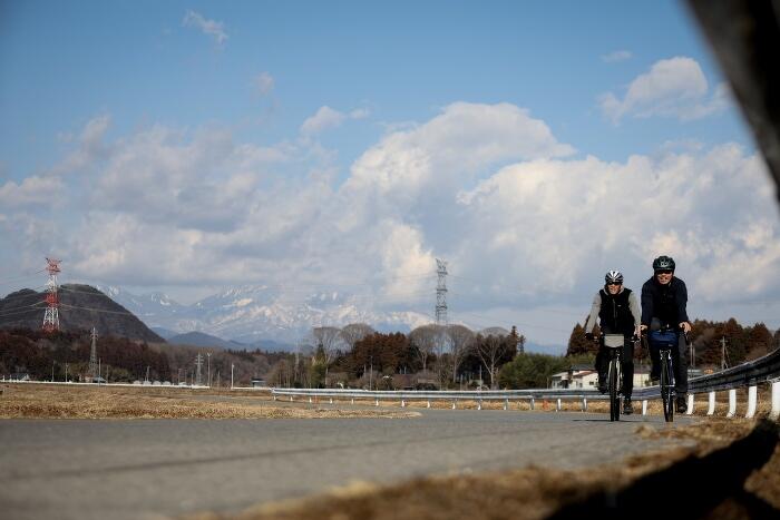 知らない風景の中を走るのは、なんと愉快なことだろう、としみじみ思っていると「あれが古賀志山」とコーイチさん。古賀志といえば、ジャパンカップで最大の勝負どころの登坂。その山を、今日は裏側から見ていることになんだか不思議な気持ちになりつつ、宇都宮にいることを実感する。
