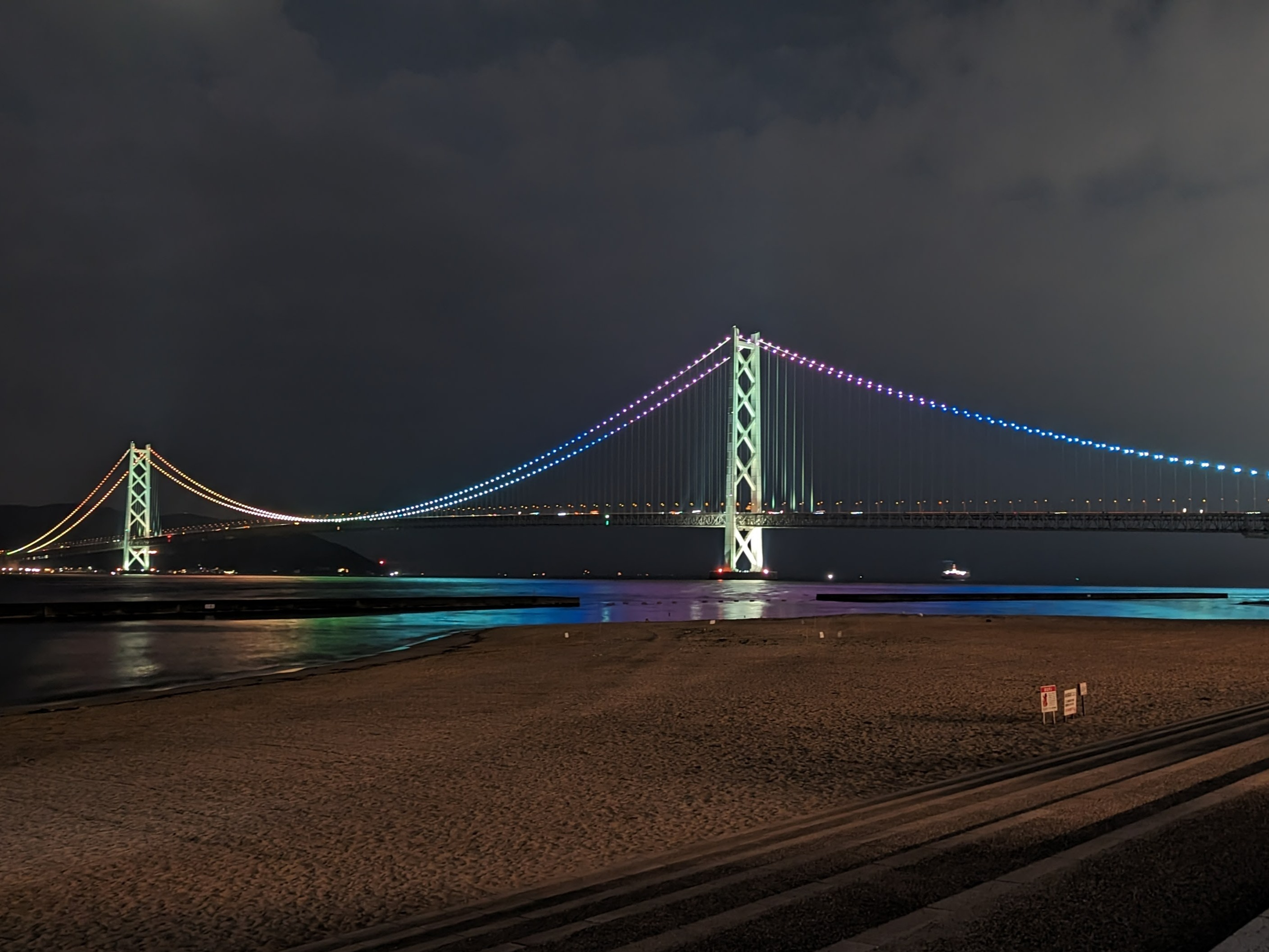 日本の標準時刻を刻む明石市にかかる世界で2番目に大きい吊り橋「明石海峡大橋」をめぐるRide&Fishのコースは全体的に勾配差がなく平坦で軽快車(ママチャリ)でも対応可。片道10キロ未満で半日もあれば十分にサイクリングと釣りを思う存分楽しめる。トイレも数多くあり、駐車場やコンビニ、また携帯の電波もフルに入り安心。釣りにおいては初心者から上級者まで楽しめる魚種が多く釣れる有名ポイントが数多く点在しています。